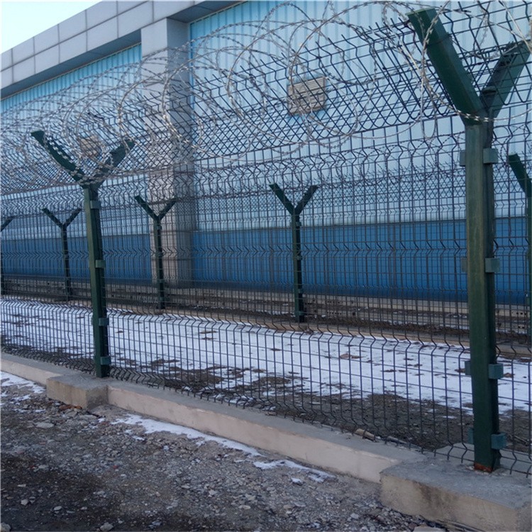 艾瑞丝网厂家可按客户技术要求、实施方案生产制作本产。本产品整体设计高大、美观、实用,网墙的设计具剪切、防攀爬功能,能够十分有效的防止罪犯的潜逃。机场防护网、监狱钢网墙V型架顶端安装刀片刺网,直径采用50cm-60cm刀片刺网主要是由热镀锌钢板或不锈钢薄板冲压而成的,它拥有尖锐的刀片,高张力镀锌钢丝或者不锈钢丝做芯线组合而成的产品。